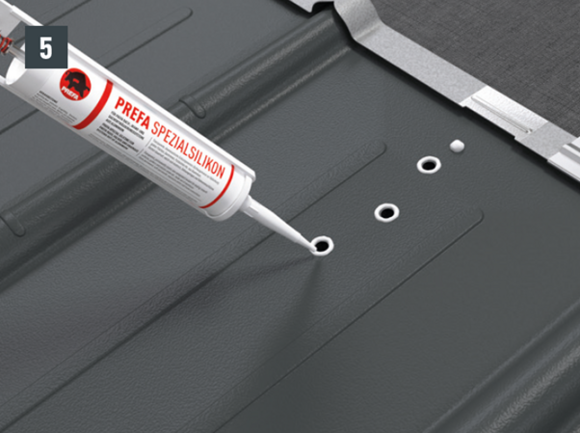W przypadku wszystkich systemów dachowych PREFA konieczne może być zamontowanie blachy podkładowej (np. jeśli w obszarze powierzchni montażowej znajduje się rąbek lub grzbiet fali).