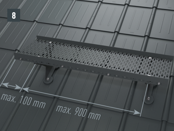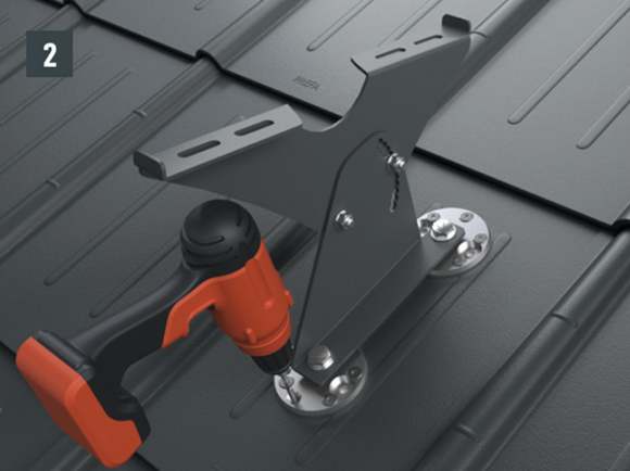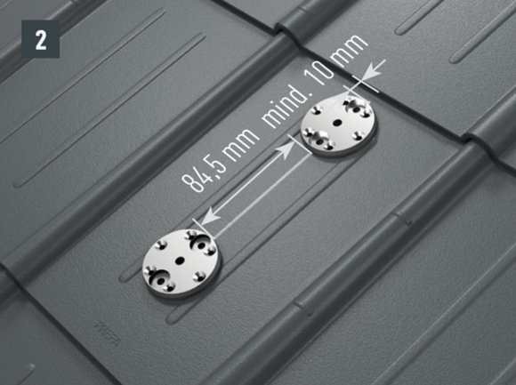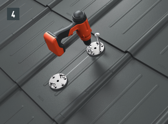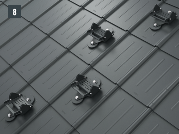 Głębokość osadzenia oryginalnych wkrętów mocujących w konstrukcji nośnej (krokwiach) musi wynosić co najmniej 80 mm. W przypadku dachówki romb 29 × 29, dachówki romb 44 × 44 oraz dachówki łupkowej wymagany jest montaż blachy podkładowej.