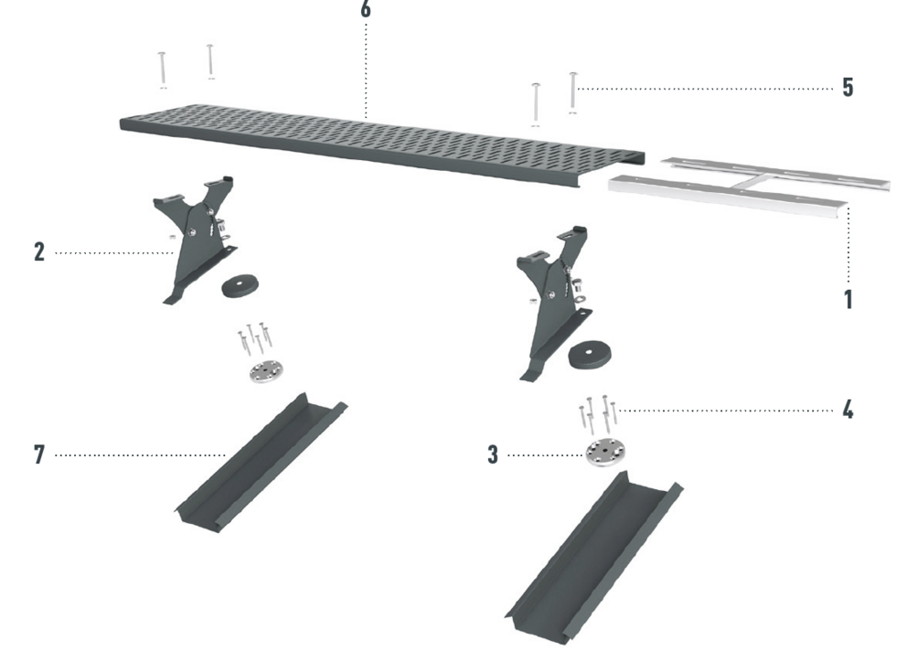 Wspornik ławy kominiarskiej na podstawach może być montowany wyłącznie przez wykwalifikowane osoby zaznajomione z systemem komunikacji dachowej oraz zgodnie z aktualnym stanem wiedzy technicznej.