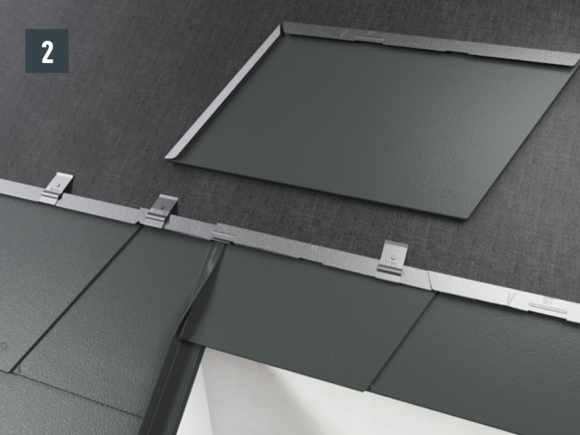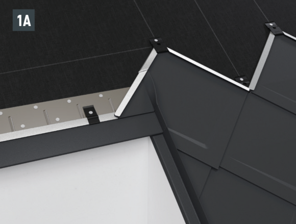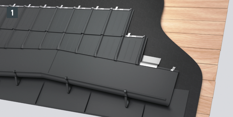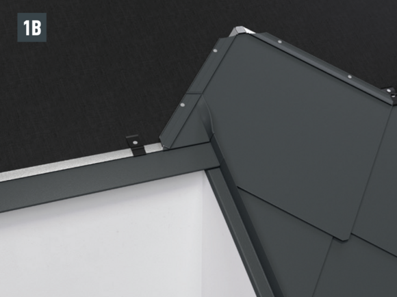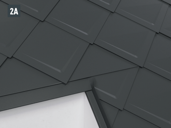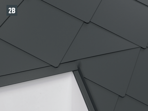 W przypadku wykonywania występów przy kryciu dachówką romb 29 × 29 lub 44 × 44 zazwyczaj należy przygotować dopasowaną blachę okapową. Wówczas bez problemów można rozpocząć od dachówki początkowej dla rombu 29 × 29 lub 44 × 44 (rys. 1A + 1B).