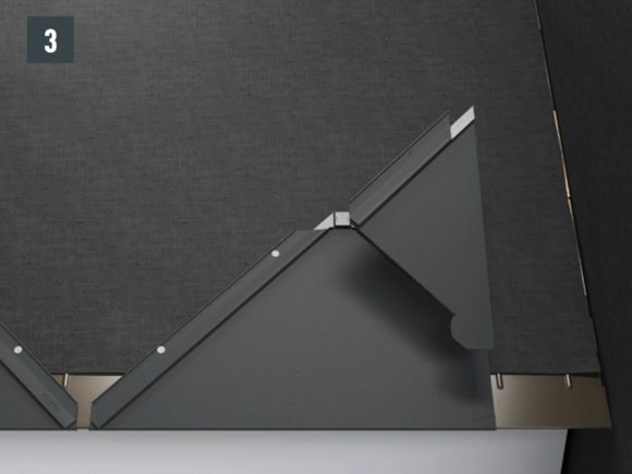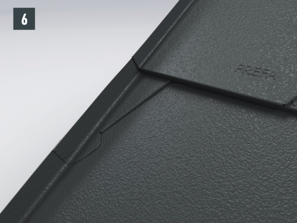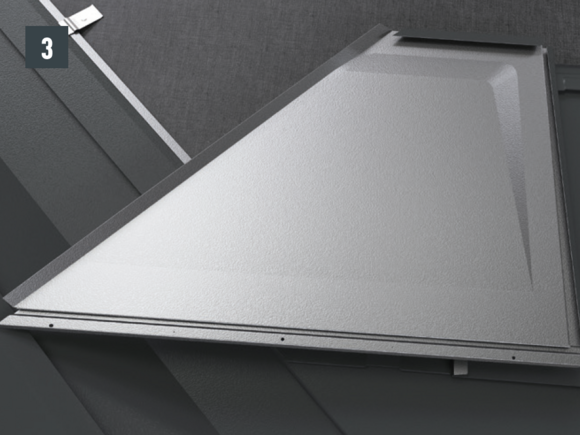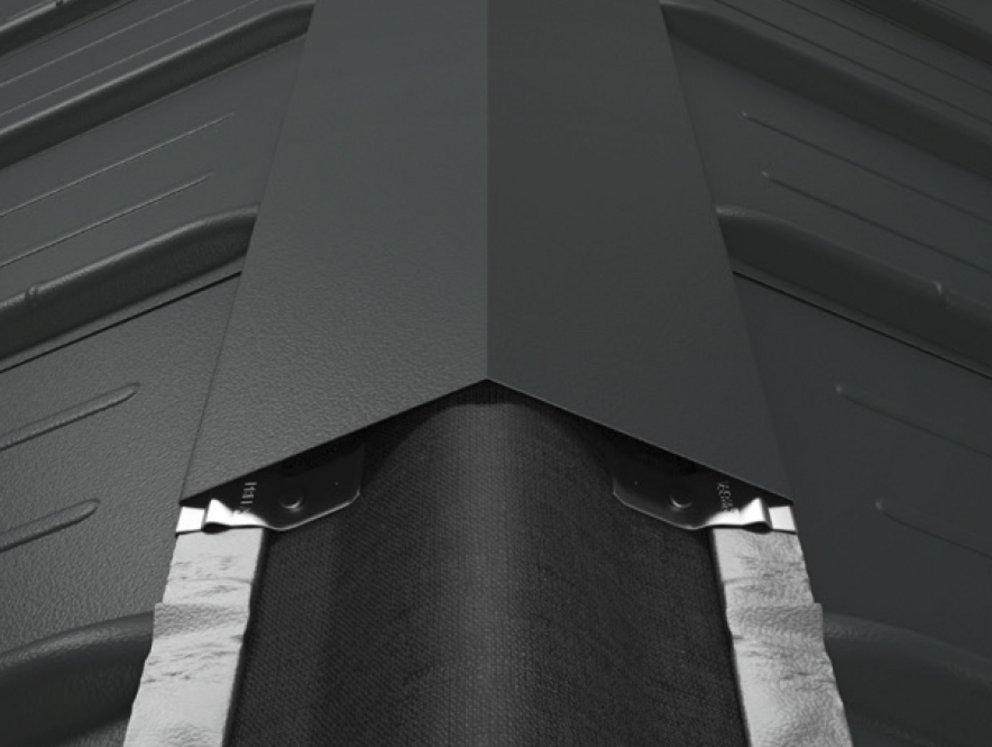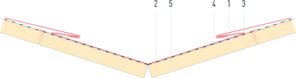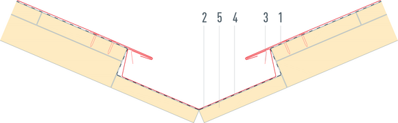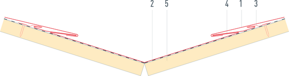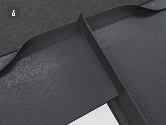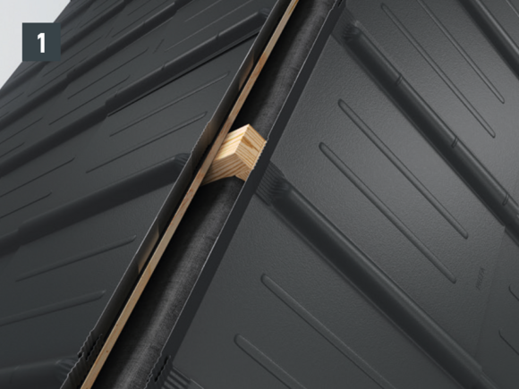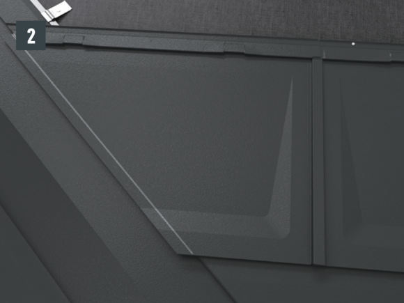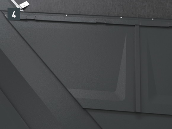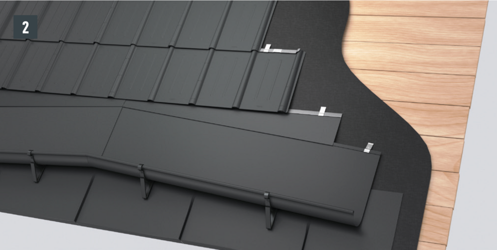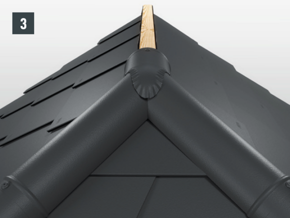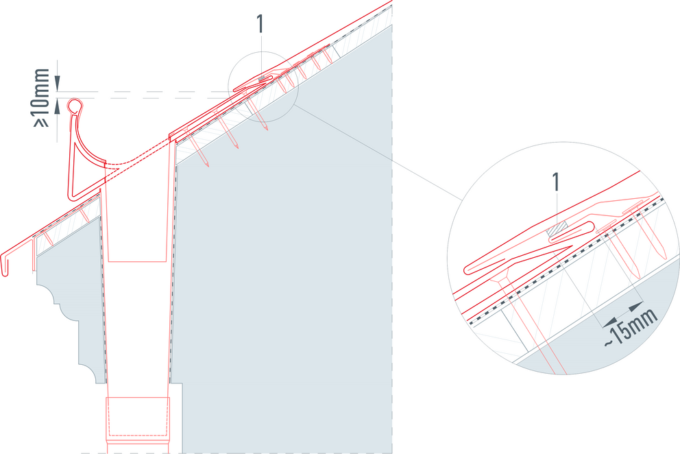 Warunkiem szczelności dachu przed śniegiem jest dociągnięcie elementów pokrycia PREFA w strefie naroża i kalenicy min. 40 mm do góry.