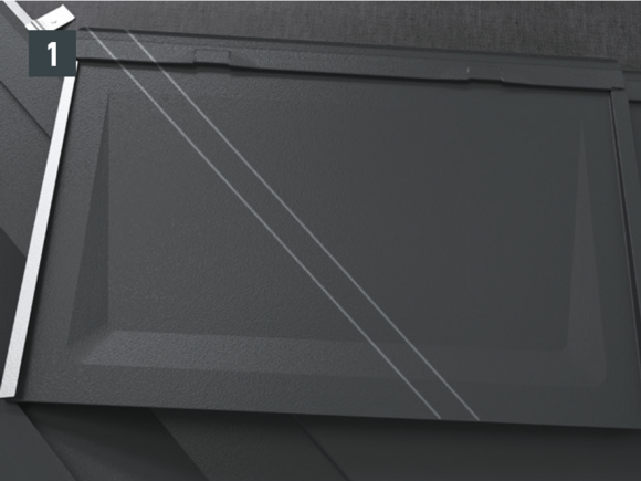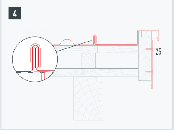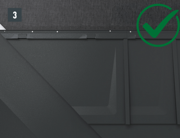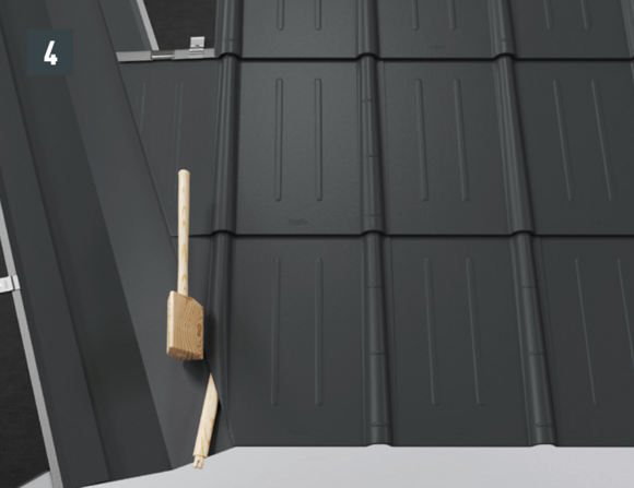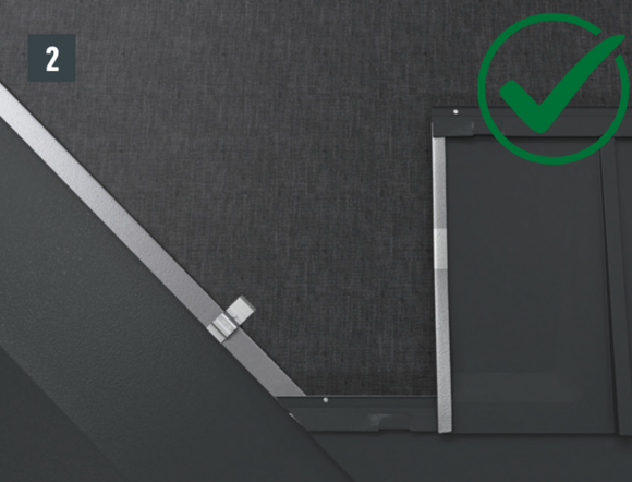 Pamiętaj, że obszar zakończenia bocznego (np. na wykończenie deski szczytowej) nie może leżeć w obszarze rąbka dachówki R.16 lub panelu dachowego FX.12. W razie potrzeby przesuń pas startowy o jedną czwartą wymiaru dachówki R.16 lub panelu dachowego FX.12.