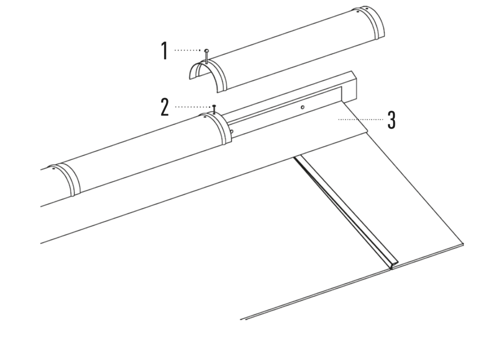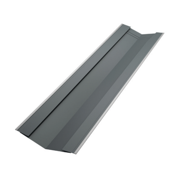 Kalenicę prostą można zastosować, gdy odstęp pomiędzy pokryciem dachowym PREFA a wierzchołkiem kalenicy jest mniejszy niż 150 mm i nie jest wymagana wentylacja.