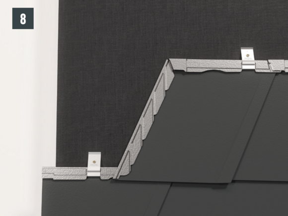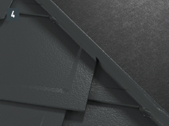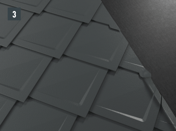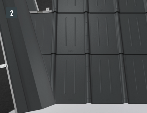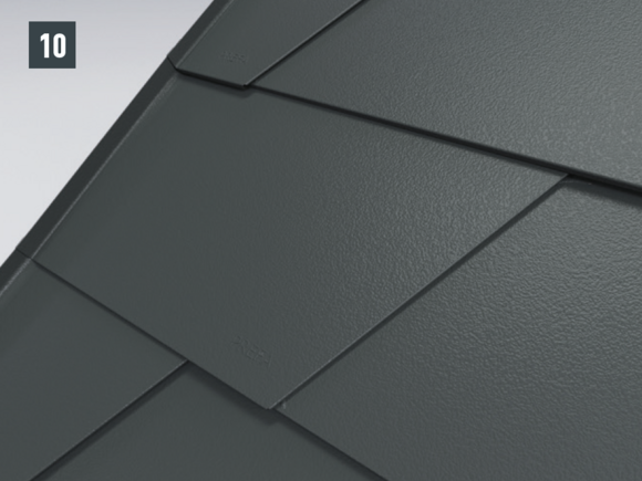 Jeśli w przypadku dachówki romb 29 × 29 lub 44 × 44 montuje się fartuch ciągły, należy użyć dachówek końcowych dla rombu 29 × 29 lub 44 × 44. Tworzą one poziomy rąbek zaczepowy.