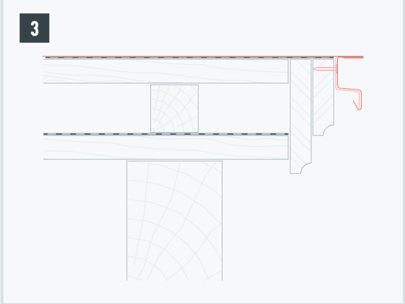 Pas startowy należy przybić na całej długości okapu, wbijając gwoździe w linii prostej, wzdłuż odbitej wcześniej linii traserskiej.