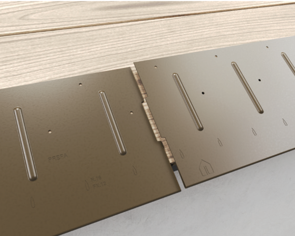 Im dokładniejszy będzie montaż pasa startowego, tym łatwiej przebiegnie fachowy montaż systemu dachowego PREFA. Jako pomoc przewidziano oznaczenia (wymiar trasowania) dla poszczególnych pokryć dachowych PREFA.