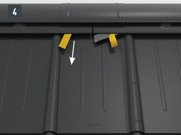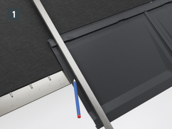 Pas startowy z wytłoczonymi oznaczeniami należy wyrównać względem środka połaci.