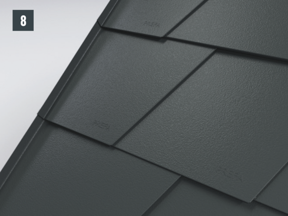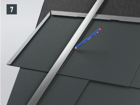 Skróć ostatnią dachówkę łupkową przed zagięciem krawędzi i ułóż na dachu (rys. 7 + 8)