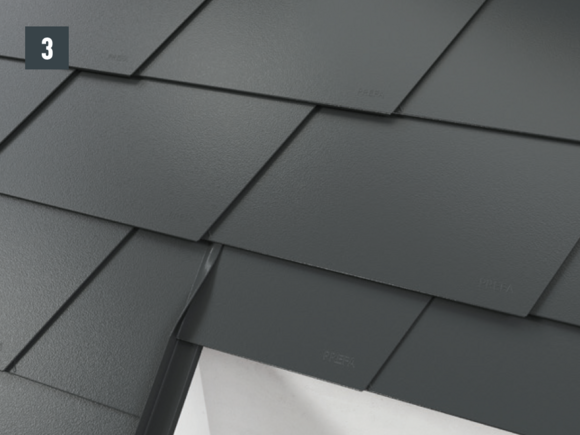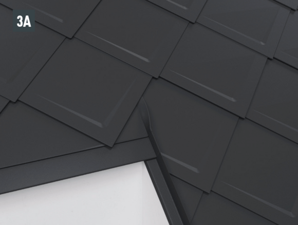 W przypadku każdego bocznego zagięcia dachówki romb 29 × 29 (wiatrownica i kołnierz) biegnące ukośnie do dołu rąbki muszą zostać wycięte na spodzie i wygięte.
