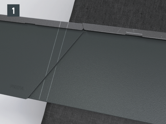 Po docięciu elementów pokrycia dachowego PREFA utworzyć rąbek zaczepowy.