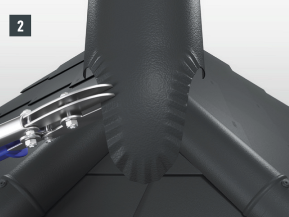Łączenie między gąsiorem wentylowanym a koszem dachowym należy uszczelnić w taki sposób, aby woda opadowa nie mogła dostać się z głównej połaci dachu do gąsiora wentylowanego.