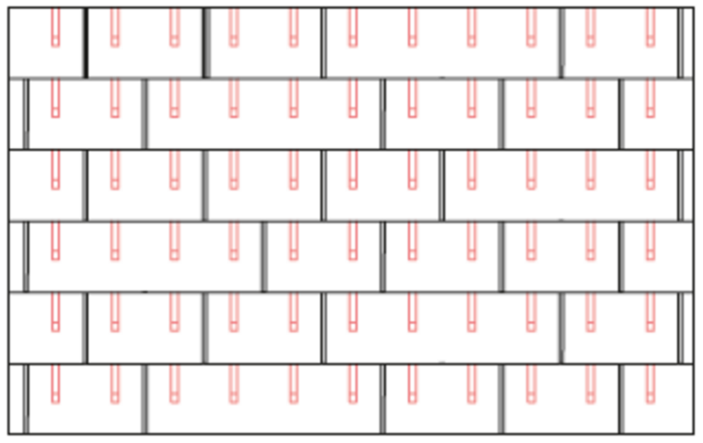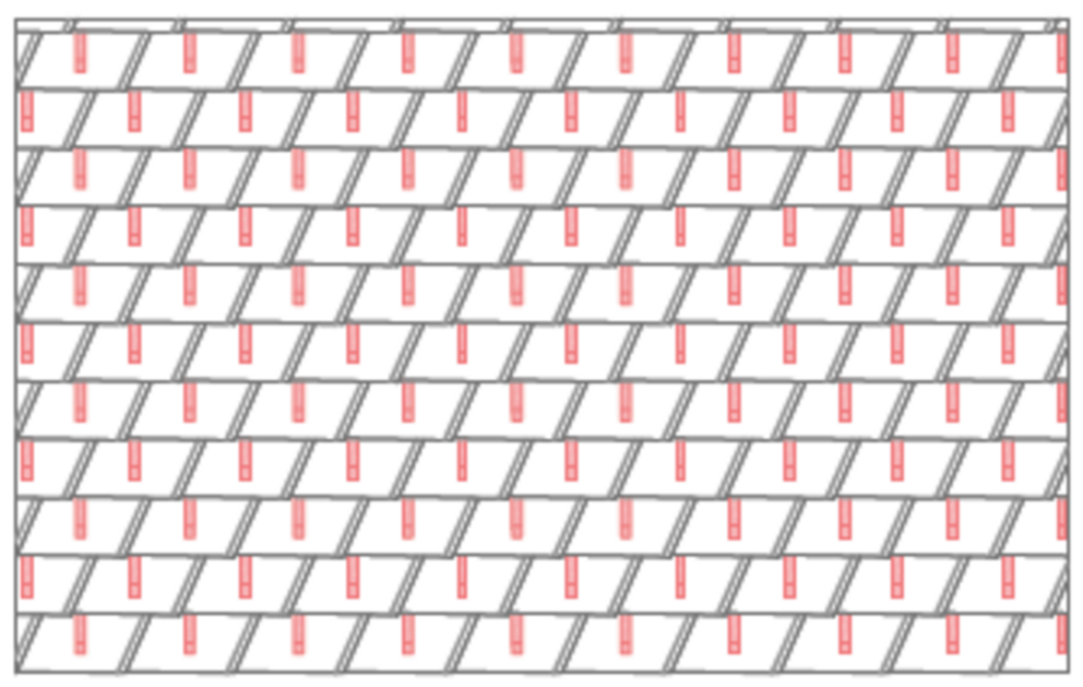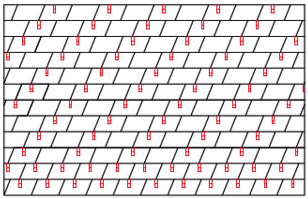 W przypadku dachówki romb 29 × 29 montuje się 3, 6 lub 12 szt. stoperów śniegowych na m² (patrz tabela poniżej – schemat układania DR1, DR2 i DR3). Pierwsze dwa rzędy muszą zostać na całej długości wyposażone w stopery śniegowe.