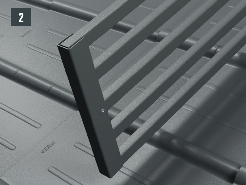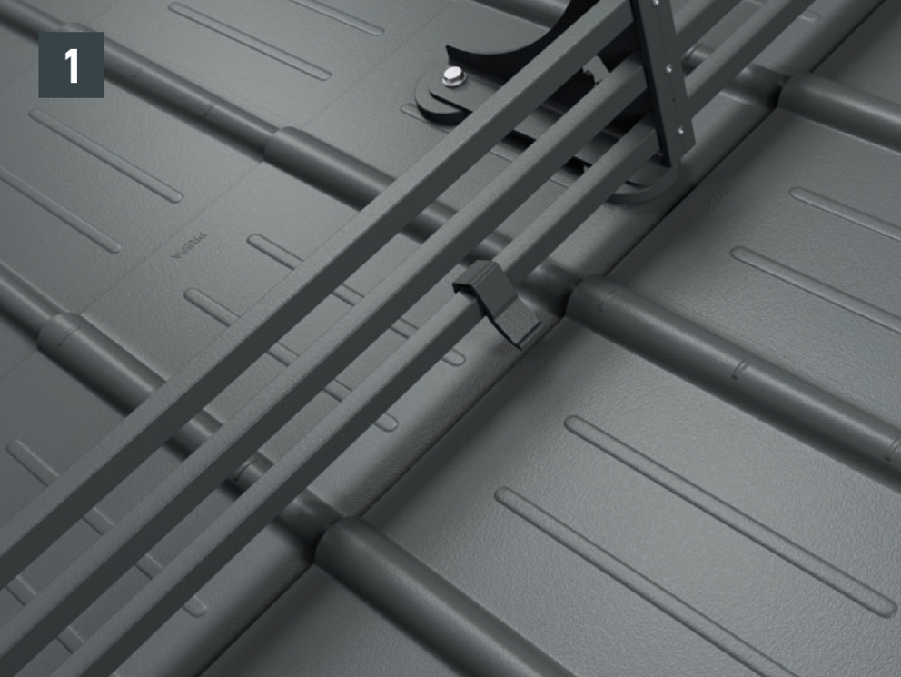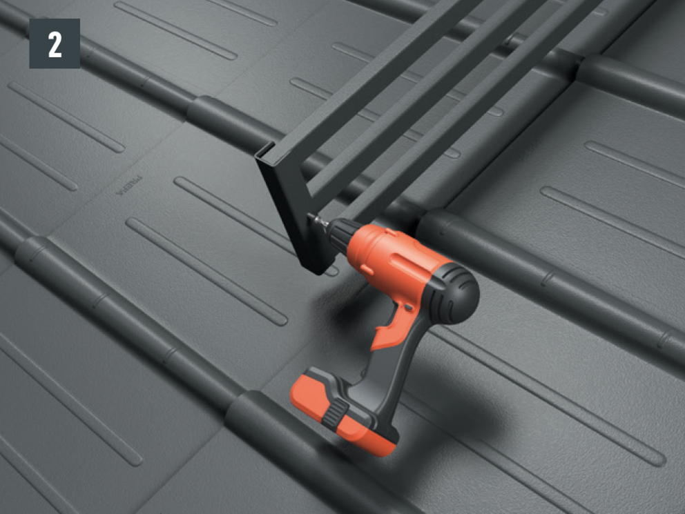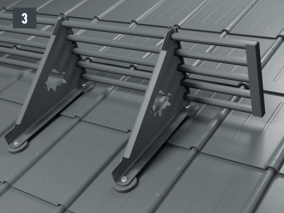 Montaż systemu barier śniegowych XL jest możliwy wyłącznie na podłożu stałym, równym i na całej powierzchni. |