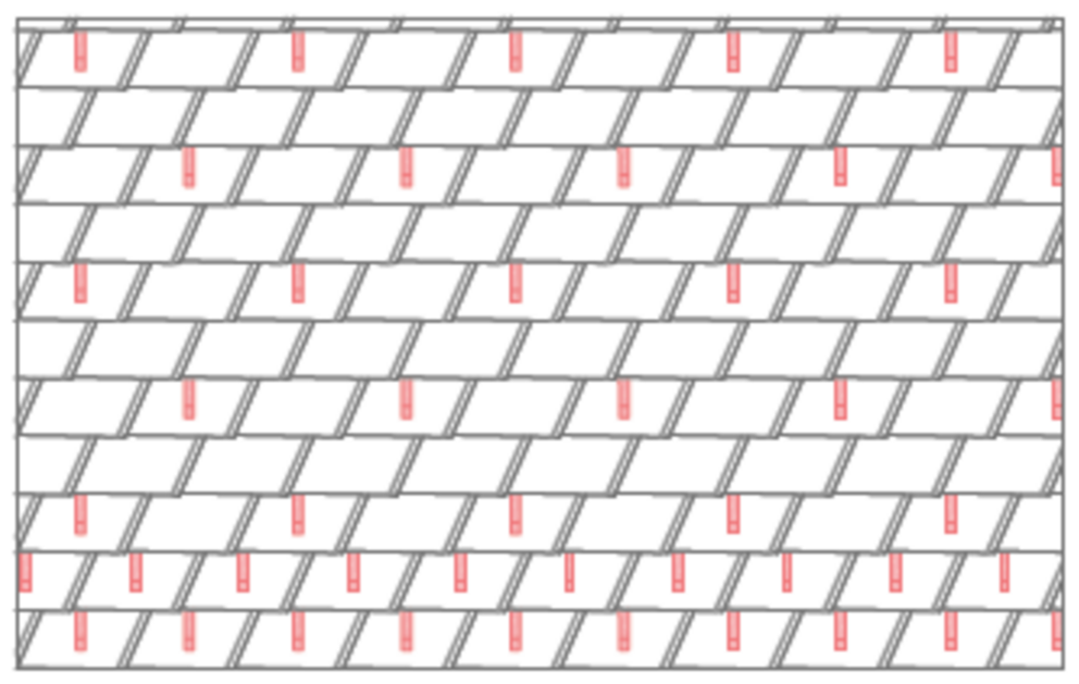 Panele dachowe FX.12 zasadniczo układa się nieregularnie, z przesunięciem pionowego rąbka kątowego wynoszącym min. 220 mm. Ze względu na dowolność przesunięcia paneli dachowych FX.12 nie można uzyskać symetrycznego schematu układania. Jeśli planuje się montaż stoperów śniegowych do FX.12, zaleca się ułożenie paneli dachowych FX.12 z regularnym przesunięciem. Zakłóca to efekt nieregularności, który w przypadku paneli dachowych FX.12 jest pożądany, jednak jedynie regularny schemat układania pozwala na zastosowanie stoperów śniegowych.