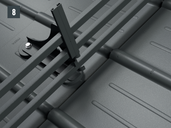 Stopery śniegowe wsuwane są na wysokości wypukłej części rąbka dachówki i mocowane co najmniej 2 gwoździami. W przypadku paneli dachowych FX.12 montaż stoperów śniegowych nie ma wpływu na liczbę zaczepów.