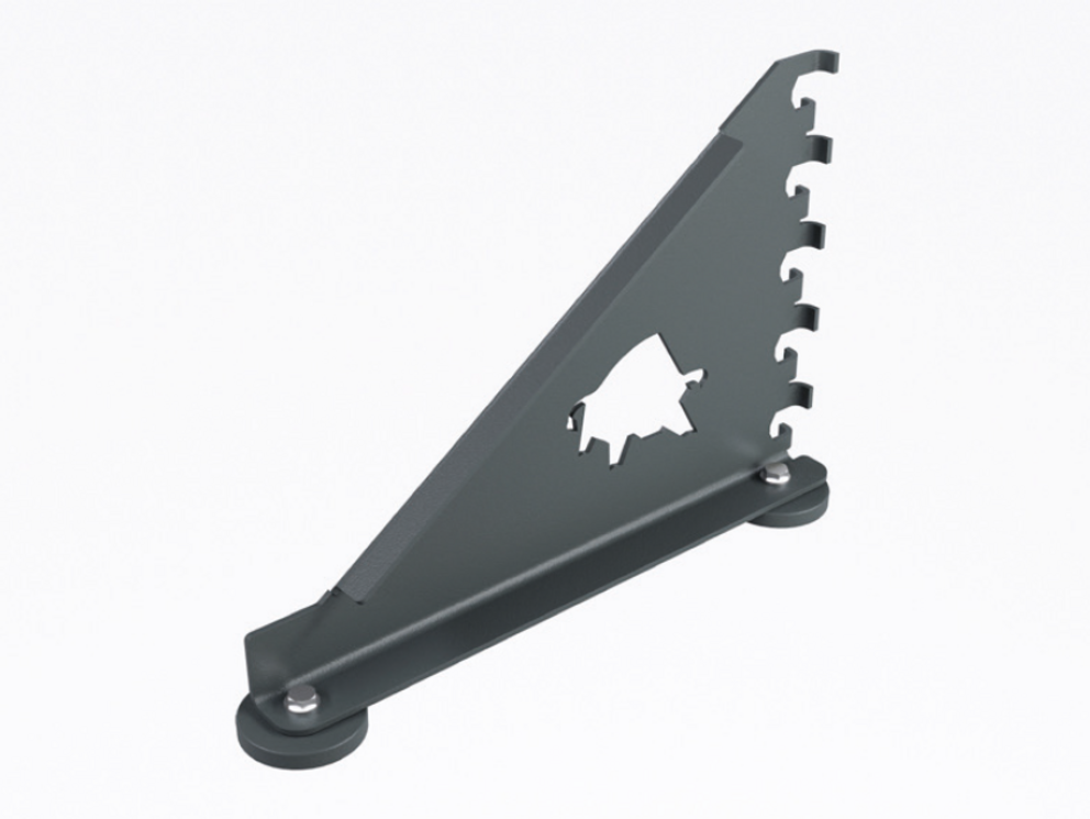 Wykonany z malowanego, bardzo wytrzymałego stopu aluminium, złożony z dwóch podstaw z uszczelnieniem, wspornika bariery śniegowej XL i zacisków, wraz z materiałem mocującym. |