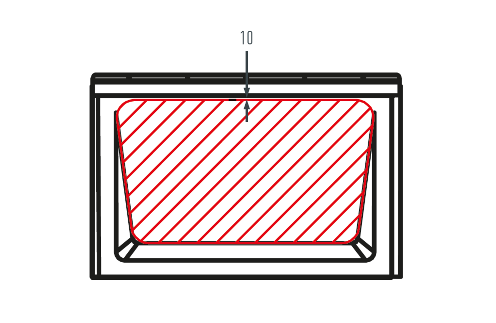 Podczas montowania akcesoriów dachowych należy sprawdzić, jaka jest dopuszczalna powierzchnia montażowa na dachówce R.16. Na poniższym rysunku pokazano powierzchnię pod montaż akcesoriów na podstawach. Powierzchnia przewidziana pod montaż innych akcesoriów może się różnić.