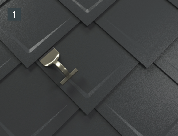 • Połóż nową dachówkę romb 29 × 29 i ponownie zamknij zaczep (rys. 3).