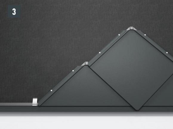 UWAGA: Nie zaginać dolnego rogu dachówki romb 44 × 44 do dołu.