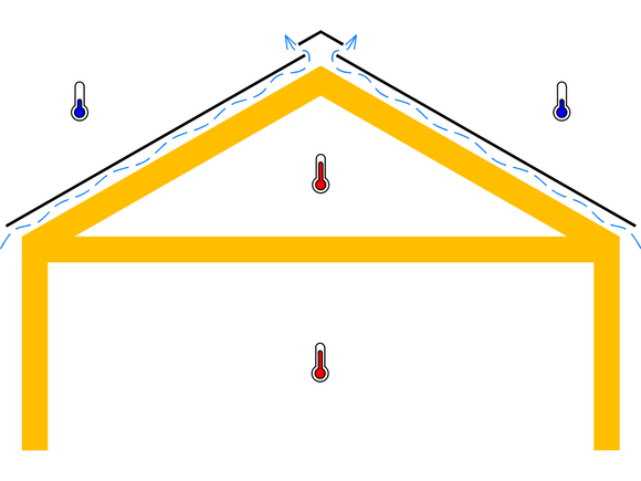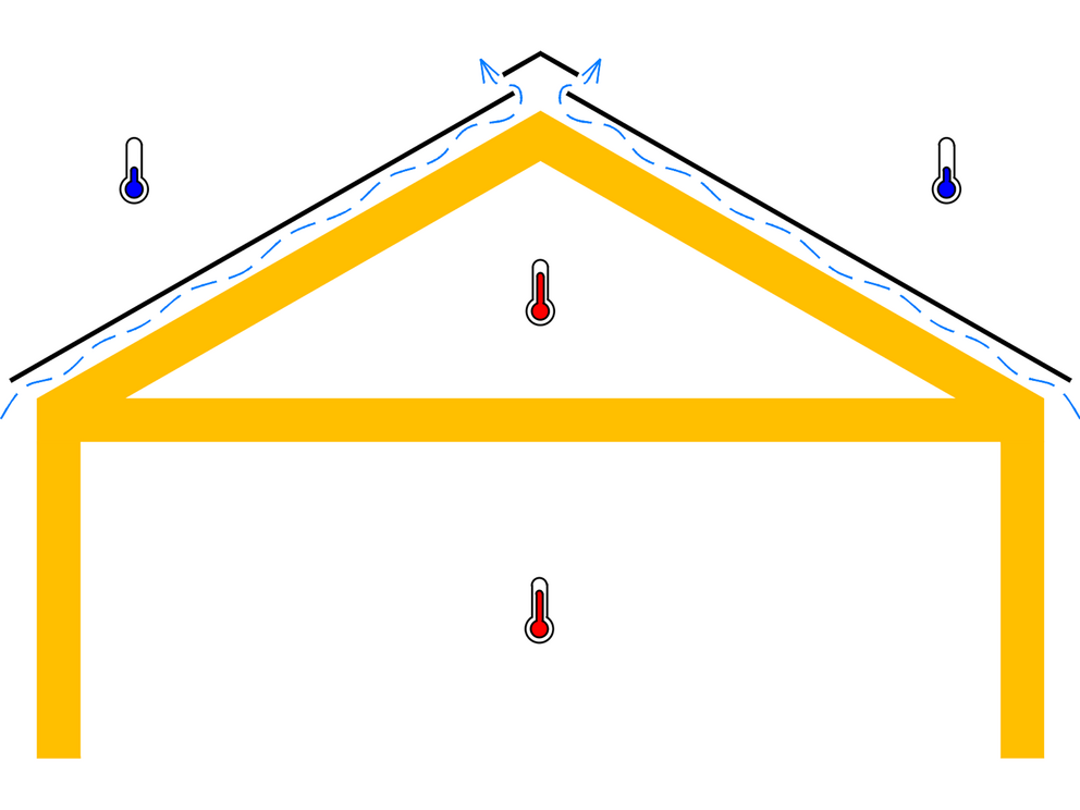 Wentylowane konstrukcje dachowe wyposażone są w warstwę powietrza pomiędzy izolacją cieplną a pokryciem dachowym. Przestrzeń wentylacyjna zapewnia odprowadzanie ciepła i wilgoci, która poprzez dyfuzję przedostaje się z wnętrza do konstrukcji dachu. Ma to pozytywny wpływ na klimat w pomieszczeniu oraz ogranicza ryzyko kondensacji pary wodnej i szkód budowlanych.