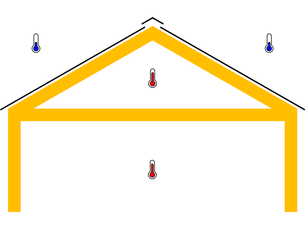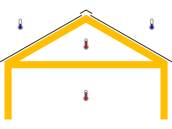 W przypadku wentylowanego (nieogrzewanego) poddasza, izolacja cieplna umieszczona jest na stropie najwyższej kondygnacji. Znajdujące się ponad nim poddasze pozostaje niezaizolowane i w pełni wentylowane. Poprzez otwory w obszarze okapu i szczytów napływa powietrze z zewnątrz, które następnie wypływa przez kalenicę.