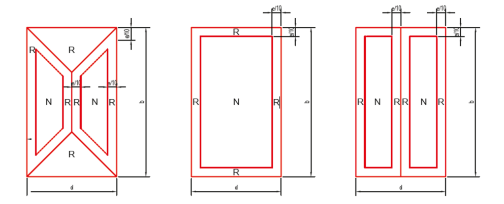 e = b lub 2*h (należy przyjąć mniejszą z wartości) – odległość dotyczy powierzchni na płaszczyźnie płaskiej