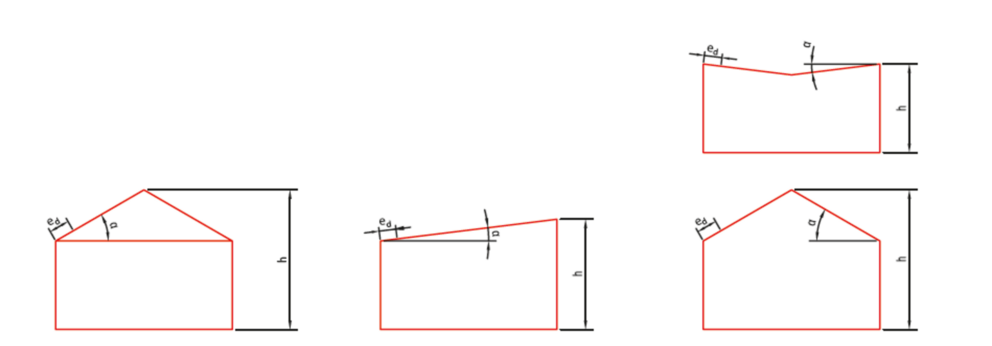 ed = wymiar odległości na połaci dachu; ed= (e/10) / (cos)
