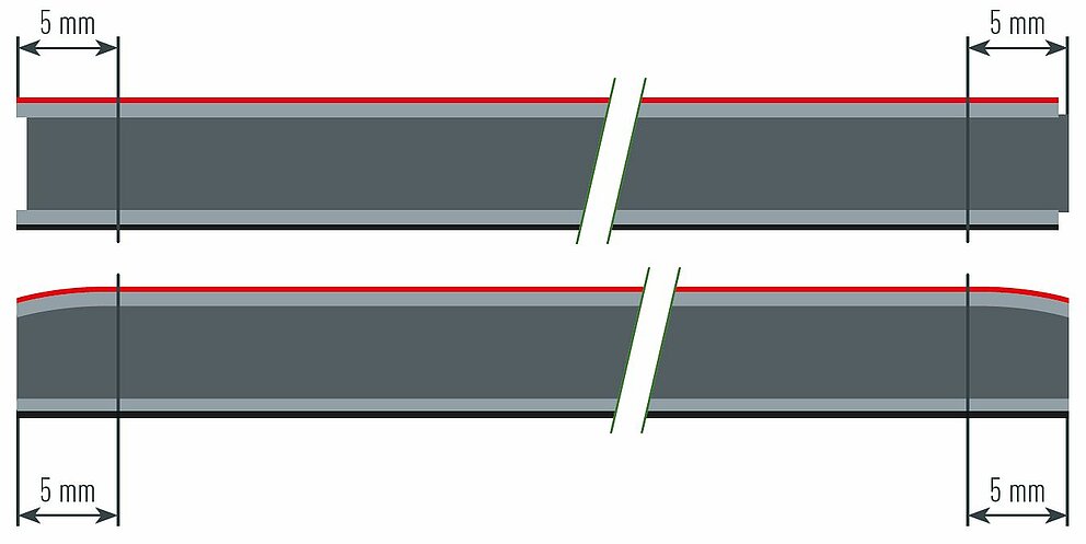 Z tego powodu przy zamówieniu nieobrobionych płyt należy zwrócić uwagę, aby surowe formaty były z każdej strony przycięte o min. 5 mm. Pozwoli to uzyskać estetyczne krawędzie cięcia na całym obwodzie, a także zapewni prostopadłość i zgodność z wytycznymi producenta. W razie potrzeby po przycięciu usunąć zadziory z krawędzi płyt.