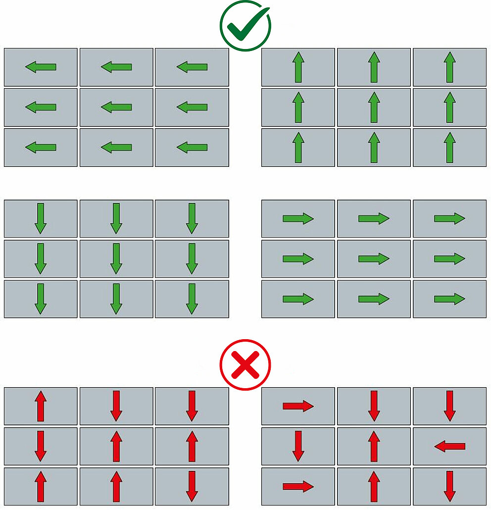 Na folii ochronnej i na spodzie płyty nadrukowane są strzałki, wskazujące kierunek lakierowania.