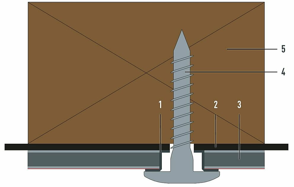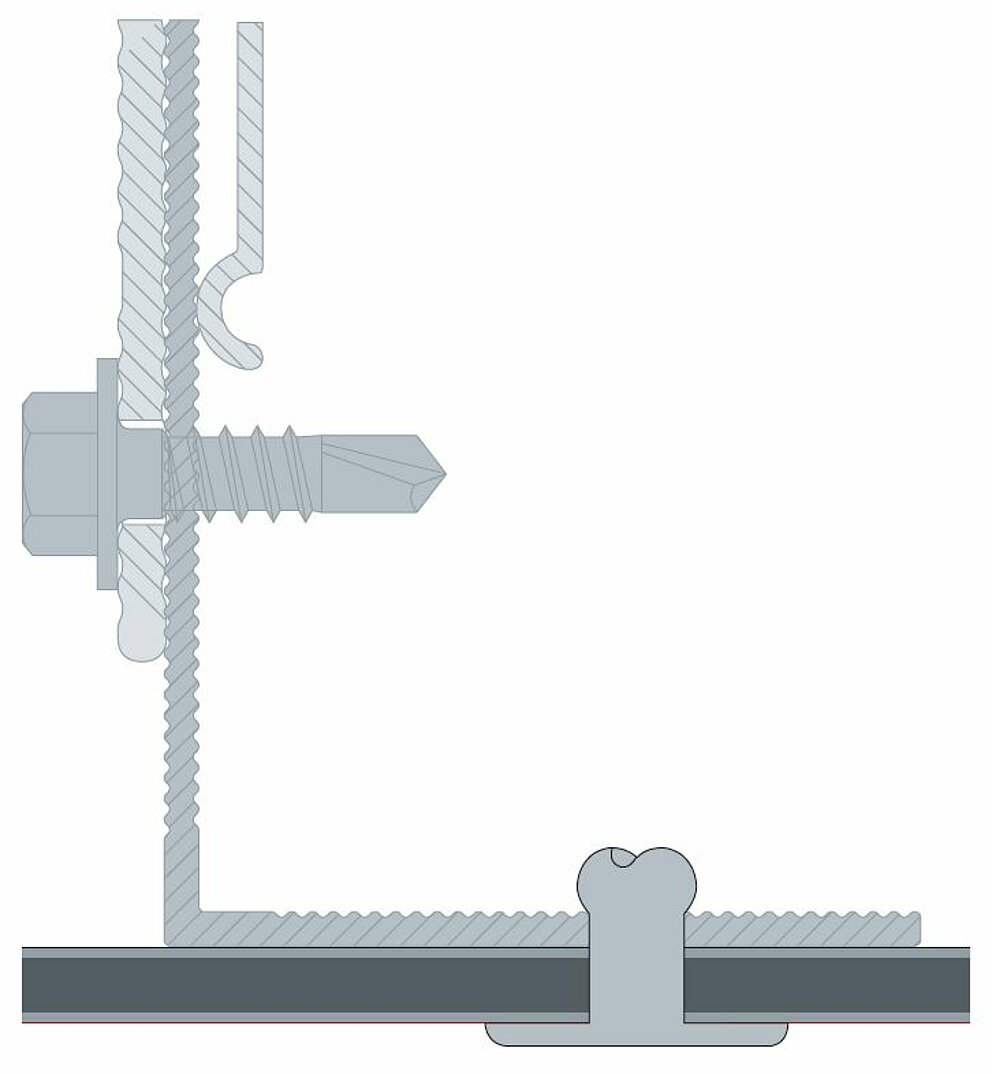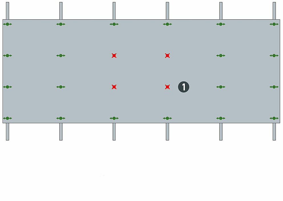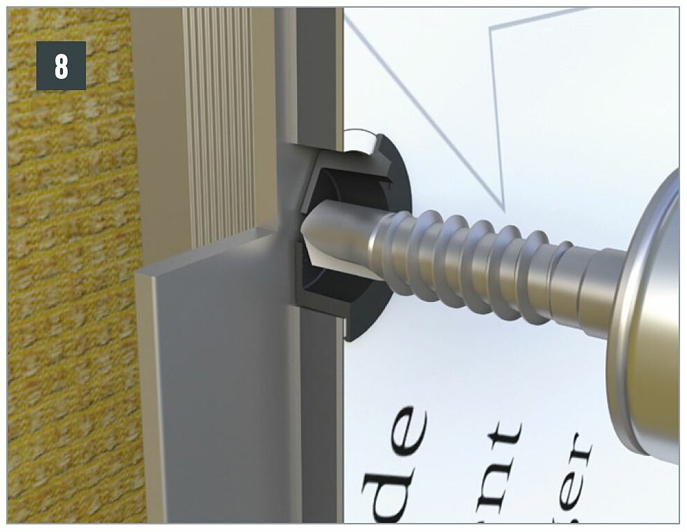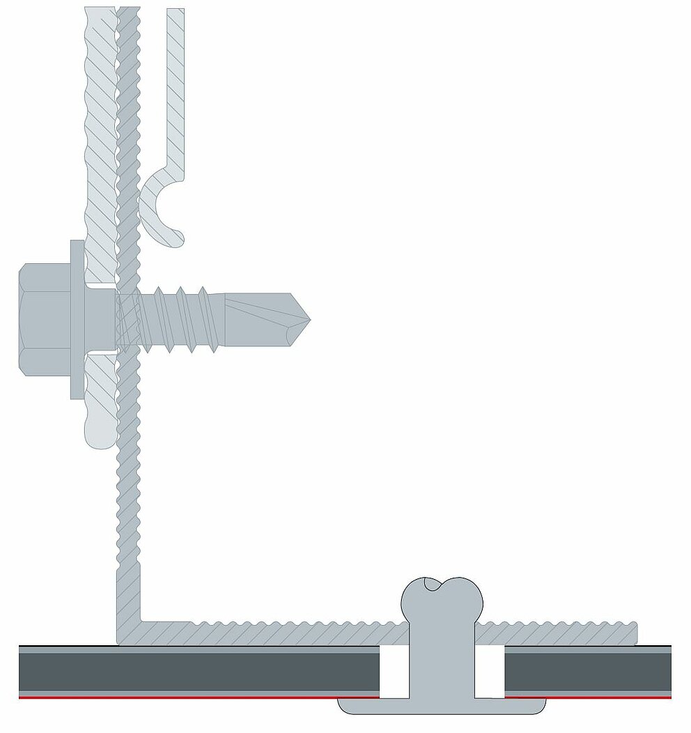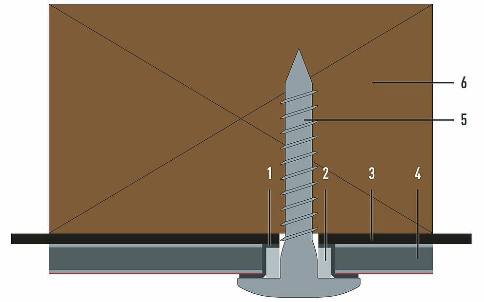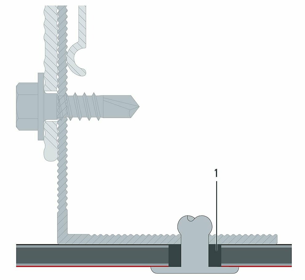 Otwór jest większy niż średnica wkrętu do metalu. Wszystkie otwory montażowe w płycie są wstępnie nawiercane wiertłem ⌀ 9,5 mm. W podkonstrukcji zawsze wykonuje się wstępny otwór o średnicy ⌀ 5,1 mm. Tylko w ten sposób punkt przesuwny jest w stanie kompensować rozszerzalność materiału płyty pod wpływem temperatury.