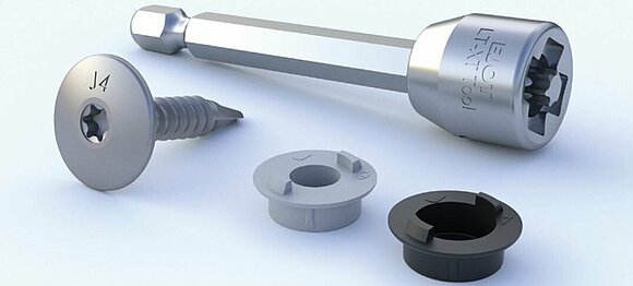 Mechaniczny system wkręcany składa się z wkrętu do elewacji, specjalnego bita LT-XT TOOL TX 25 oraz dopasowanych do niego tulei do punktów stałych i przesuwnych.