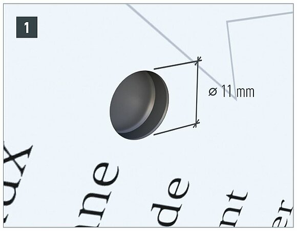 Ponieważ aluminiowa płyta kompozytowa PREFABOND jest w tym punkcie trwale połączona z podkonstrukcją drewnianą, punkt stały zapobiega przesuwaniu się płyty. Aby wykonać punkt stały, wcisnąć do otworu tuleję do punktu stałego ⌀ 8,5 mm na ⌀ 5,1 mm. W kolejnym kroku można wkręcić śrubę.