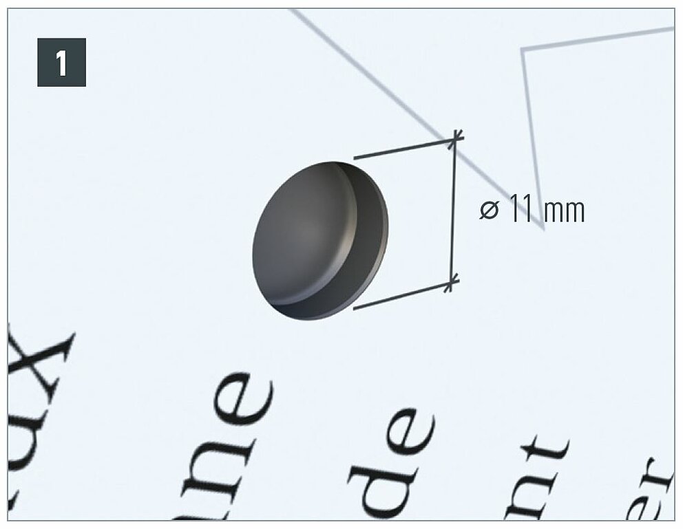 Lekko naciąć folię ochronną wokół wierconego otworu za pomocą noża do folii PREFA (⌀ 5,1 mm i ⌀ 9,5 mm), aby po zakończeniu montażu można ją było bez trudu zdjąć. W przeciwnym razie może dojść do zakleszczenia folii między płytą a spodem łba nitu, co utrudni jej usunięcie.