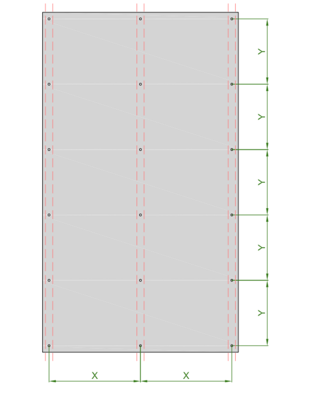 Poziome odstępy [X] pionowych profili nośnych określane są na podstawie wymagań statycznych. Konieczne jest indywidualne projektowanie z uwzględnieniem specyfiki obiektu!