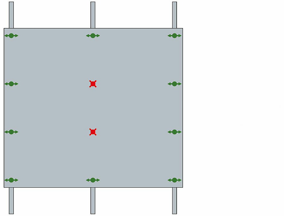 Niezależnie od wielkości płyty do mocowania mechanicznego każdej płyty wymagane są co najmniej 2 punkty stałe. Tylko w ten sposób można zapewnić stabilne ustawienie płyty i uniemożliwić jej skręcanie.