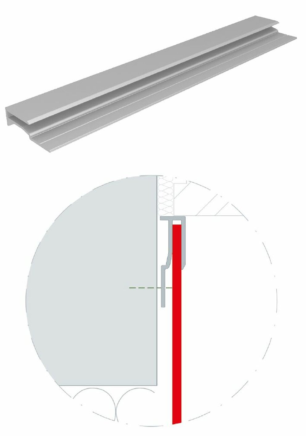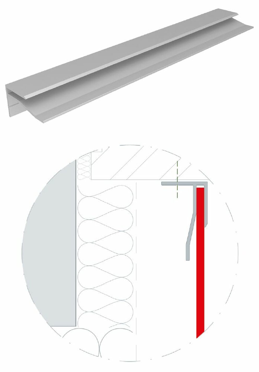 Dwa wytłaczane profile kołnierza do aluminiowych płyt kompozytowych, każdy o długości 6200 mm, mogą być fabrycznie malowane proszkowo.