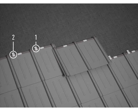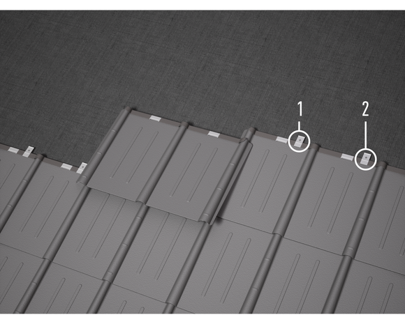 Każdą dachówkę przymocuj dwoma zaczepami systemowymi (standardowe mocowanie). Przy pełnym deskowaniu do mocowania wykorzystuje się gwoździe 2,8/25.