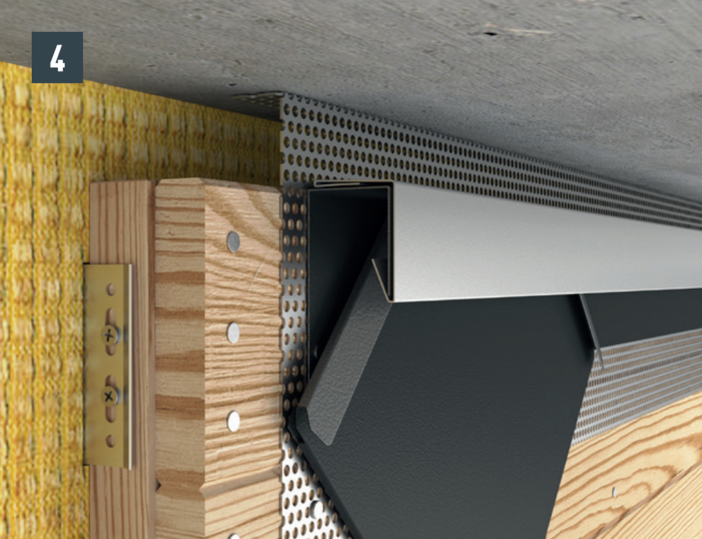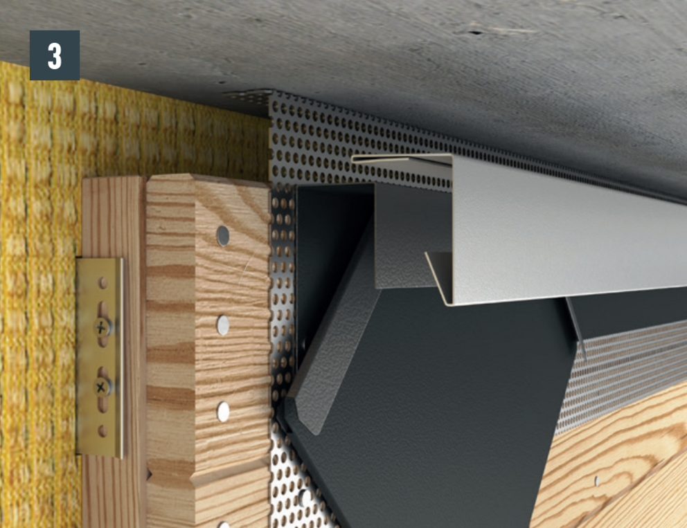 Aby zapewnić właściwą wentylację elewacji, na jej górnym zakończeniu należy utworzyć otwór wentylacyjny. Aby uzyskać większą sztywność, przy otworze wylotowym (np. w podbitce) zamontować blachę perforowaną z zagięciem pod kątem 90°.