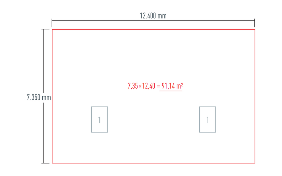 91,14 m² / 5 = 18,228 m² |