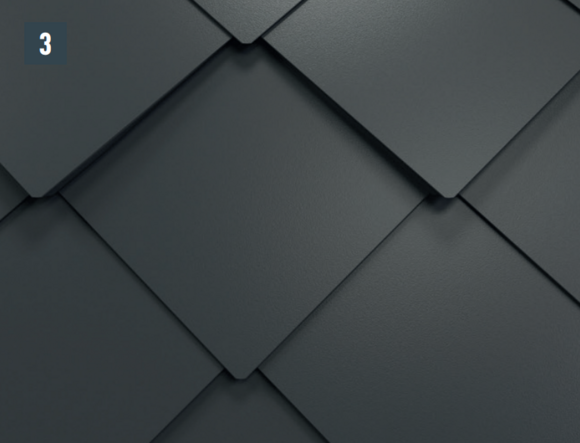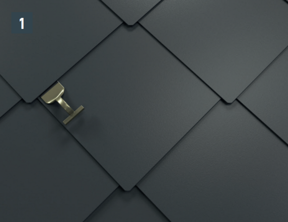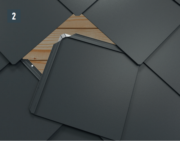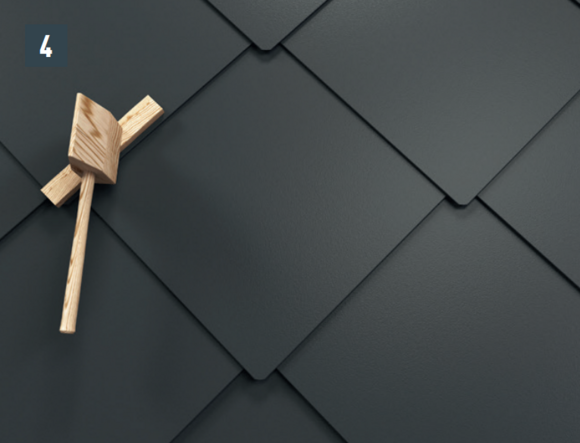 • Otworzyć lekko rąbek zaczepowy rombu elewacyjnego 44 × 44, wsunąć go do góry i zamocować (rys. 3).