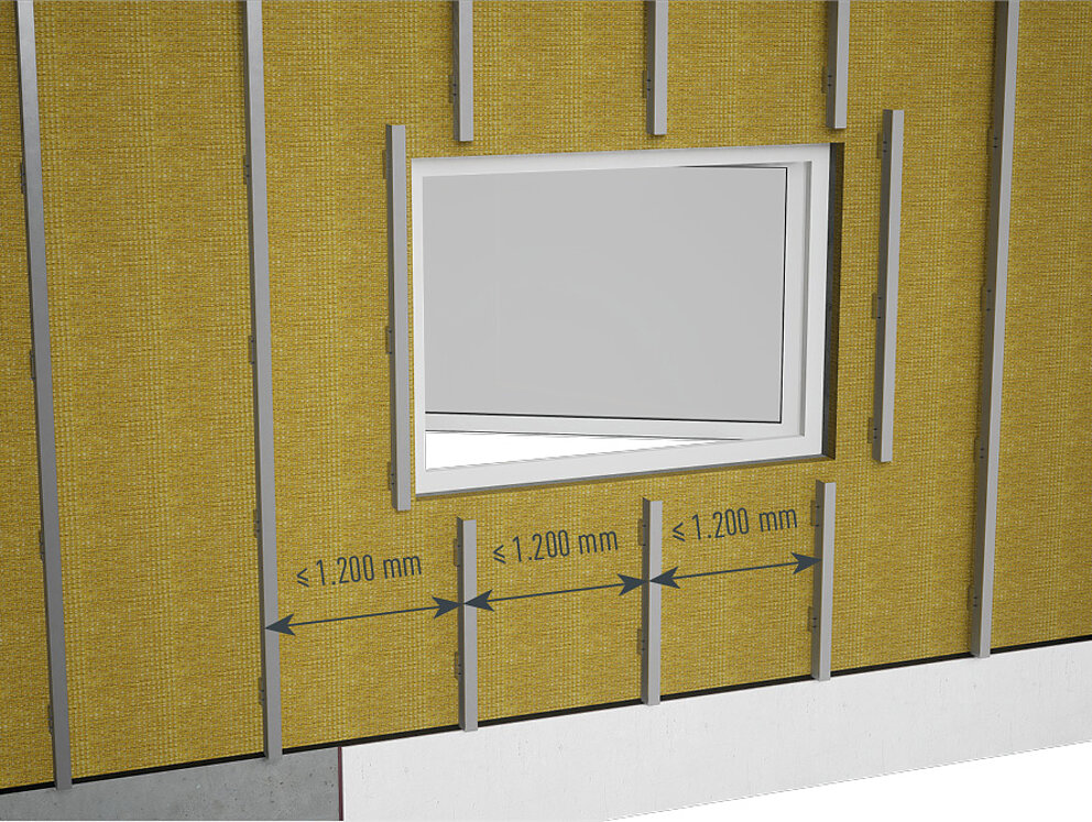 W zależności od materiału wybranego dla konstrukcji nośnej szczelina wentylacyjna z tyłu musi odpowiadać obowiązującym krajowym wymaganiom. W celu zapewnienia swobodnego przepływu w płaszczyźnie wentylacji od tyłu profile nośne muszą być ukierunkowane w sposób pasujący do układania profili. Budowa konstrukcji nośnej może być wykonana jako 1-warstwowa lub 2-warstwowa, zależnie od kierunku układania profili.