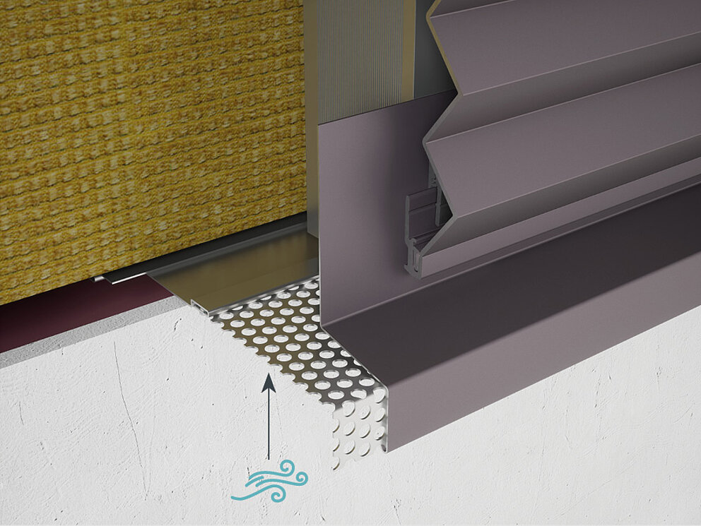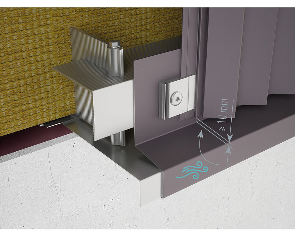 Aby zapewnić wystarczający dopływ powietrza do wentylowanej pustki powietrznej profili wytłaczanych, odległość między dolną krawędzią profilu a okapnikiem musi wynosić co najmniej 10 mm.