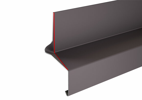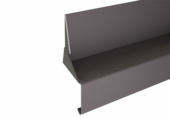 Następnie należy ustawić na krawędzi górne ościeże dostosowane do warunków panujących w miejscu montażu i wsunąć je do listwy wtykowej. Okapnik jest zaczepiony na górnej płycie ościeża.