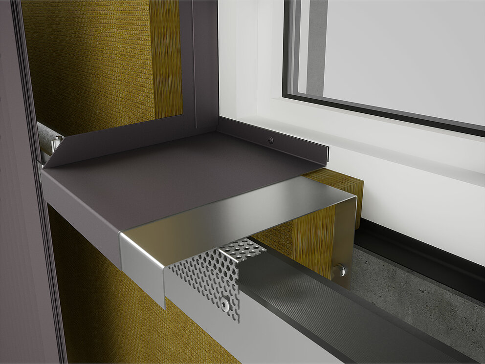 Pierwszym etapem obramowania okna jest montaż blachy perforowanej i listew podtrzymujących. Sprawdzić, czy otwór wylotu powietrza z tylnego poziomu wentylacji jest drożny.