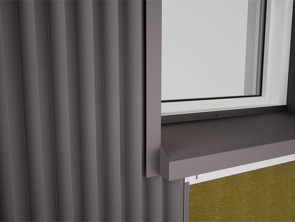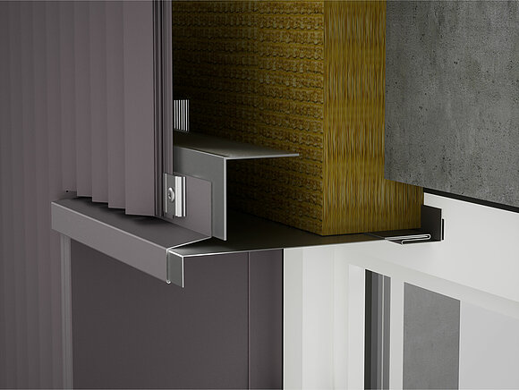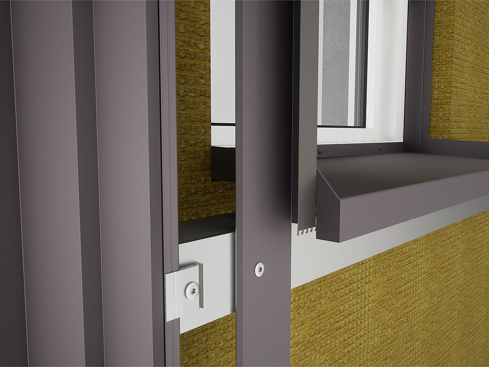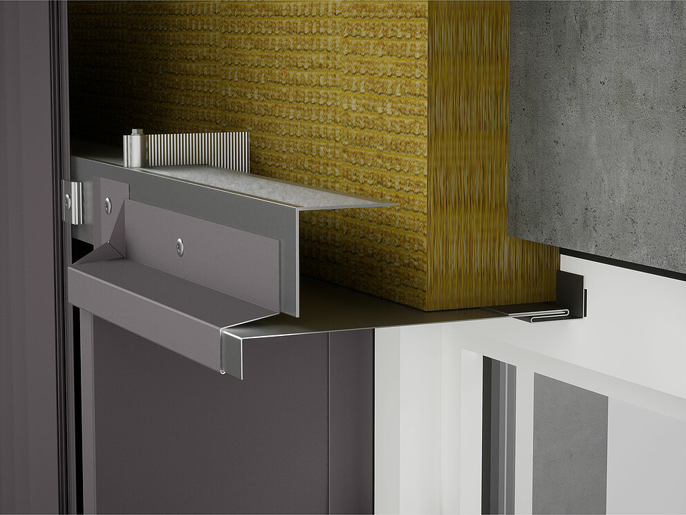 Przykręcić wsporniki do ościeża do konstrukcji nośnej po lewej i prawej stronie okna. Jednocześnie do ramy okiennej lub muru mocuje się listwy wciskane do blachy ościeża i listwy wciskane do nadproża okna.