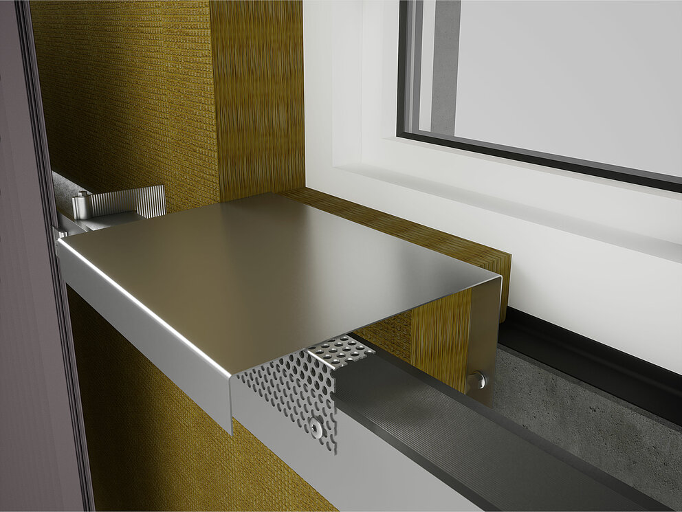 Teraz parapet można zawiesić na listwie mocującej i zamontować go na ramie okiennej, uwzględniając wymagania budynku. Następnie zamontować listwy wtykowe do bocznego ościeża.