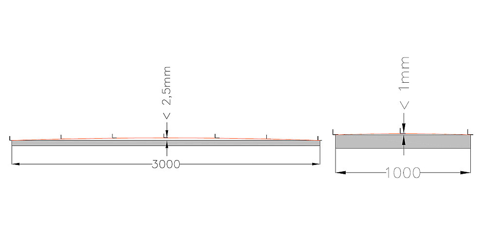 Tolerancja konstrukcji nośnej powinna być ograniczona do 2,5 mm przy rozstawie punktów pomiarowych 3000 mm lub 1 mm przy 1000 mm.