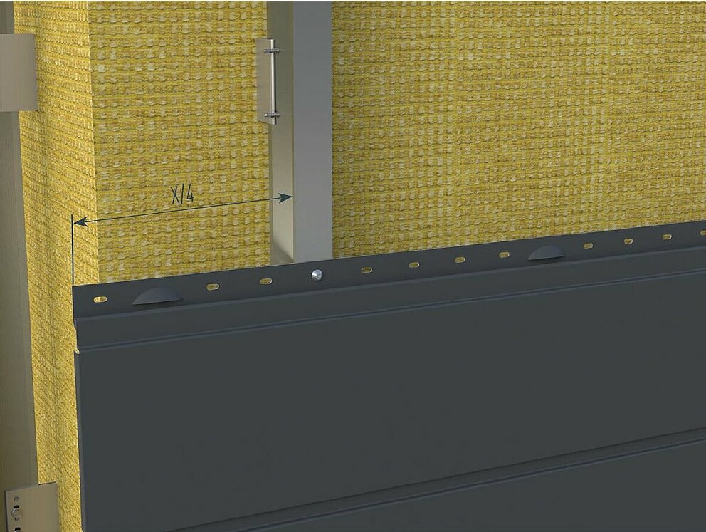 Należy zapewnić zalecane maksymalne występy produktów Siding, Siding.X i Siding perforowany zgodnie z wymaganiami statycznymi dla niepodpartych stropów budynków / w obszarze krawędzi maksymalnie jednej czwartej odległości od konstrukcji nośnej.