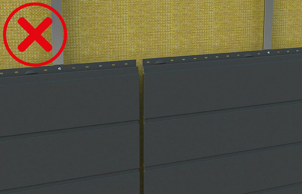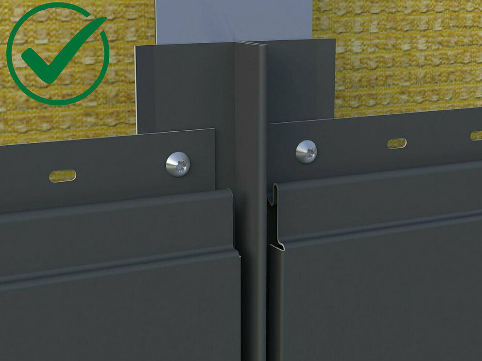 Podczas montażu w linii prostej należy pamiętać o dociśnięciu elementu sidingu do profilu nośnego konstrukcji nośnej, aby móc zamontować blachę stykową.