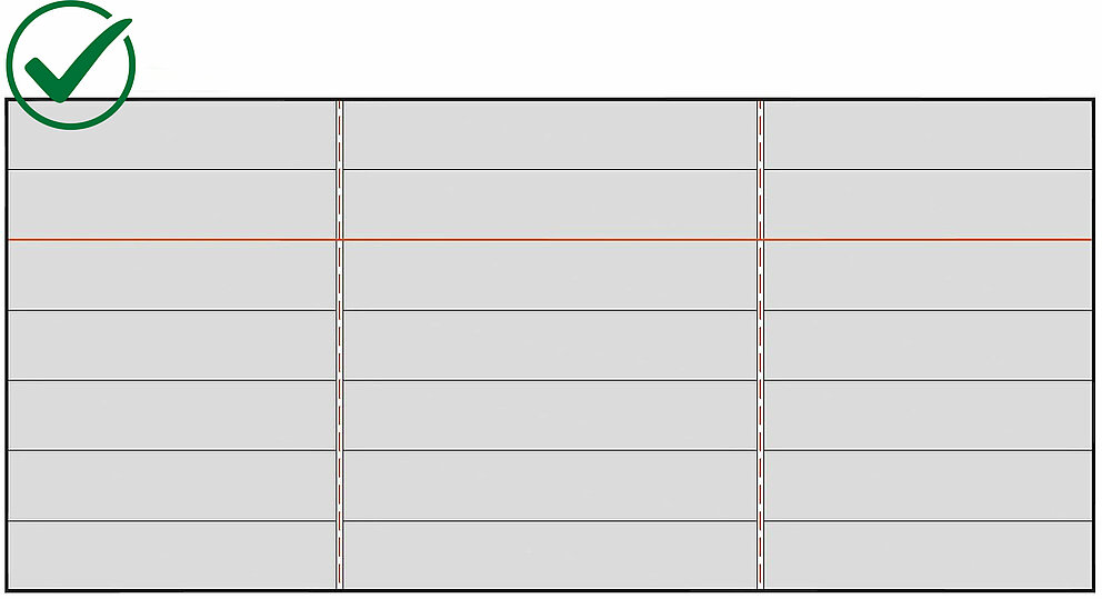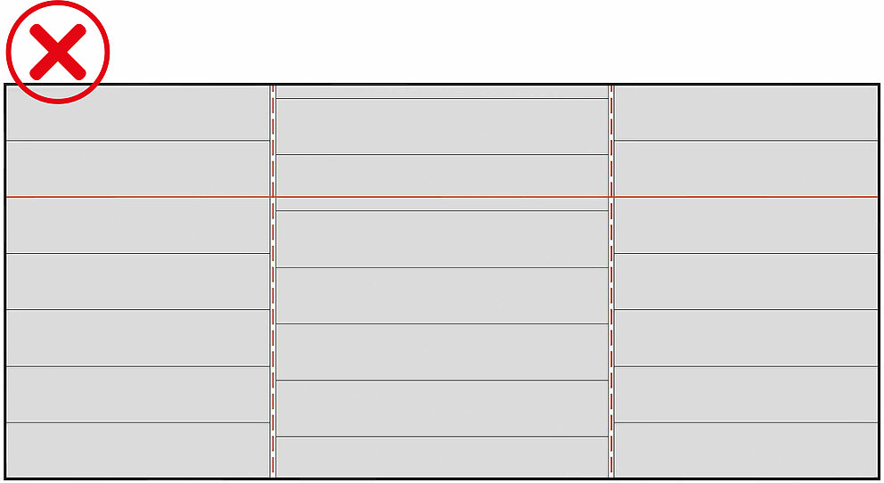 Należy zwrócić szczególną uwagę, żeby po przerwach, jak np. w przypadku połączeń doczołowych zachować położenie w jednej linii i płaszczyźnie. W tym celu zaleca się łączenie produktów Siding i Siding.X w regularnych odstępach z użyciem linii kontrolnych.